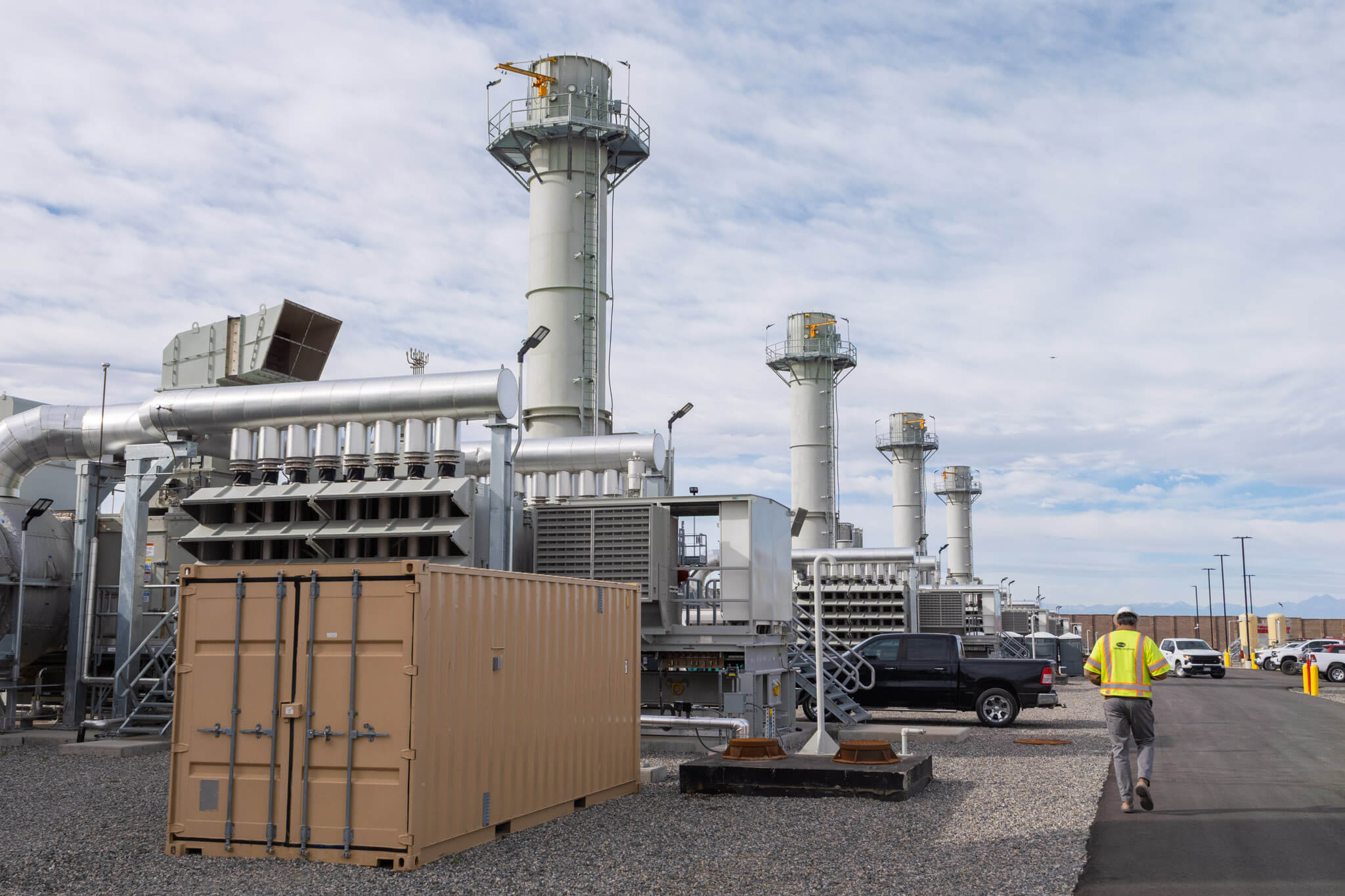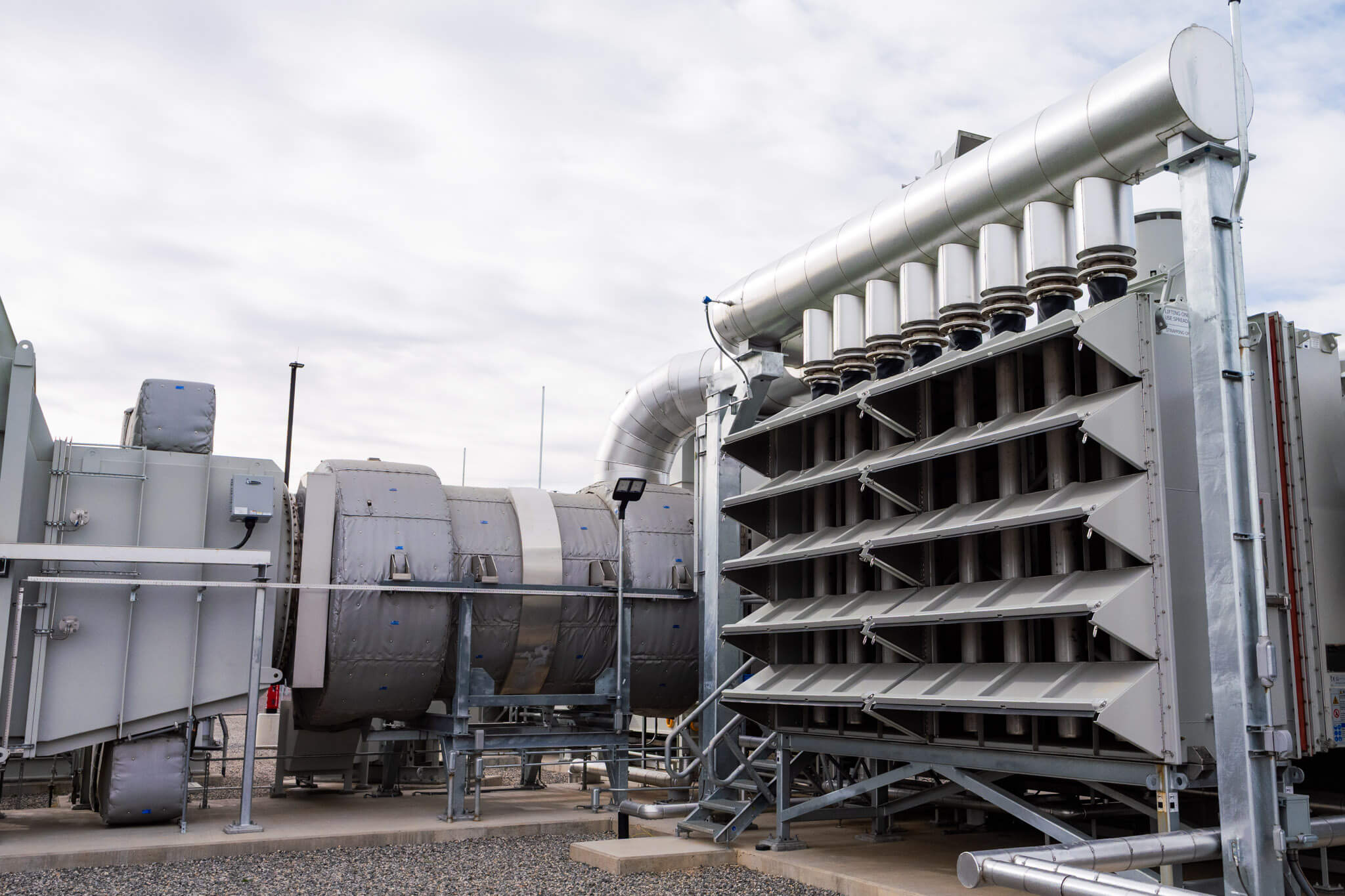 Each combustion turbine generator is equipped with an exhaust stack and a selective catalytic reduction system, which plays a crucial role in reducing nitrogen oxides (NOx) emissions. The generators leverage an inlet heating system to recover and reuse heat from exhaust to allow for operation in extreme cold conditions.