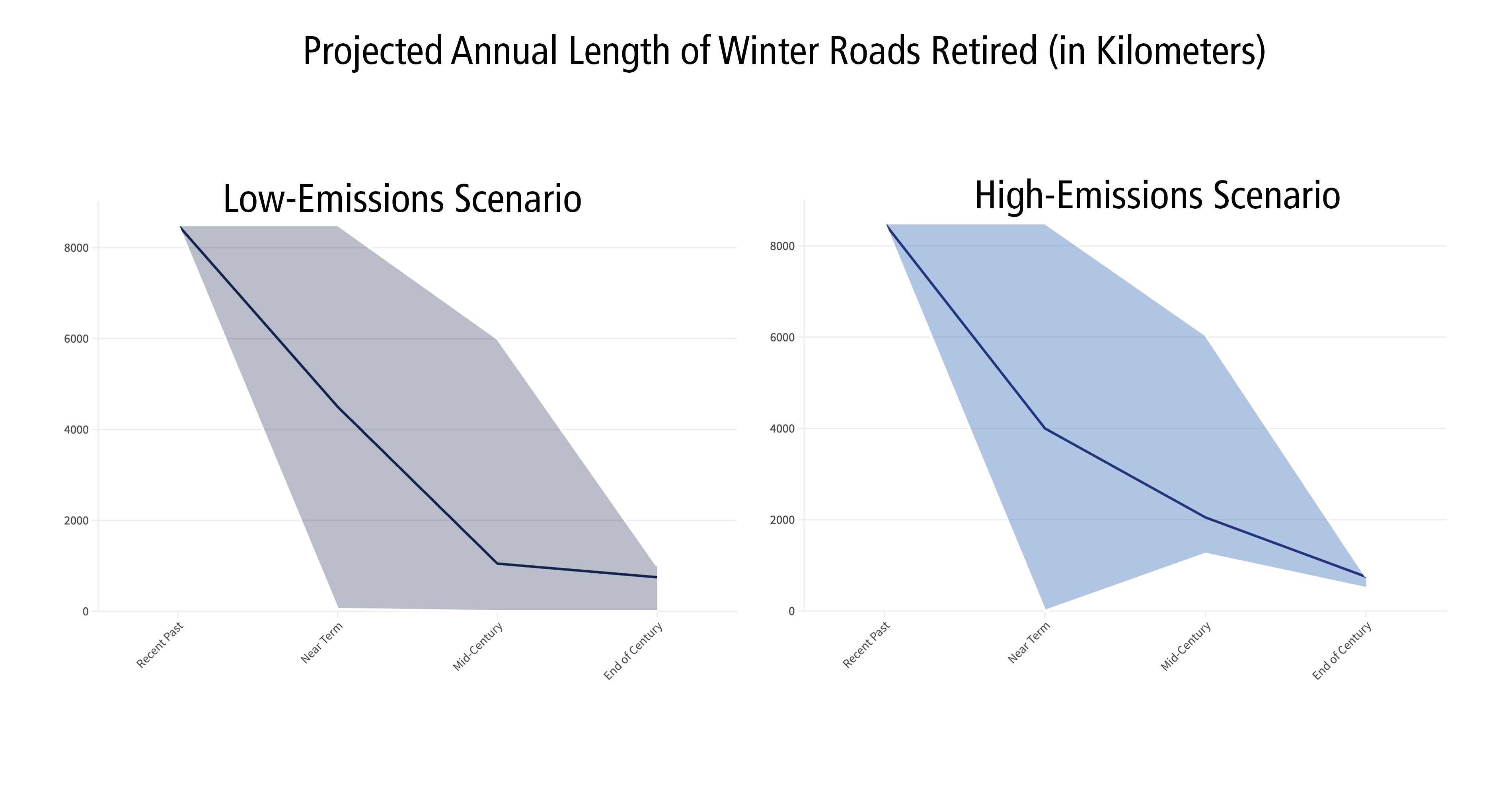 Increasing temperatures are reducing the viability of winter ice roads and access to rural towns.