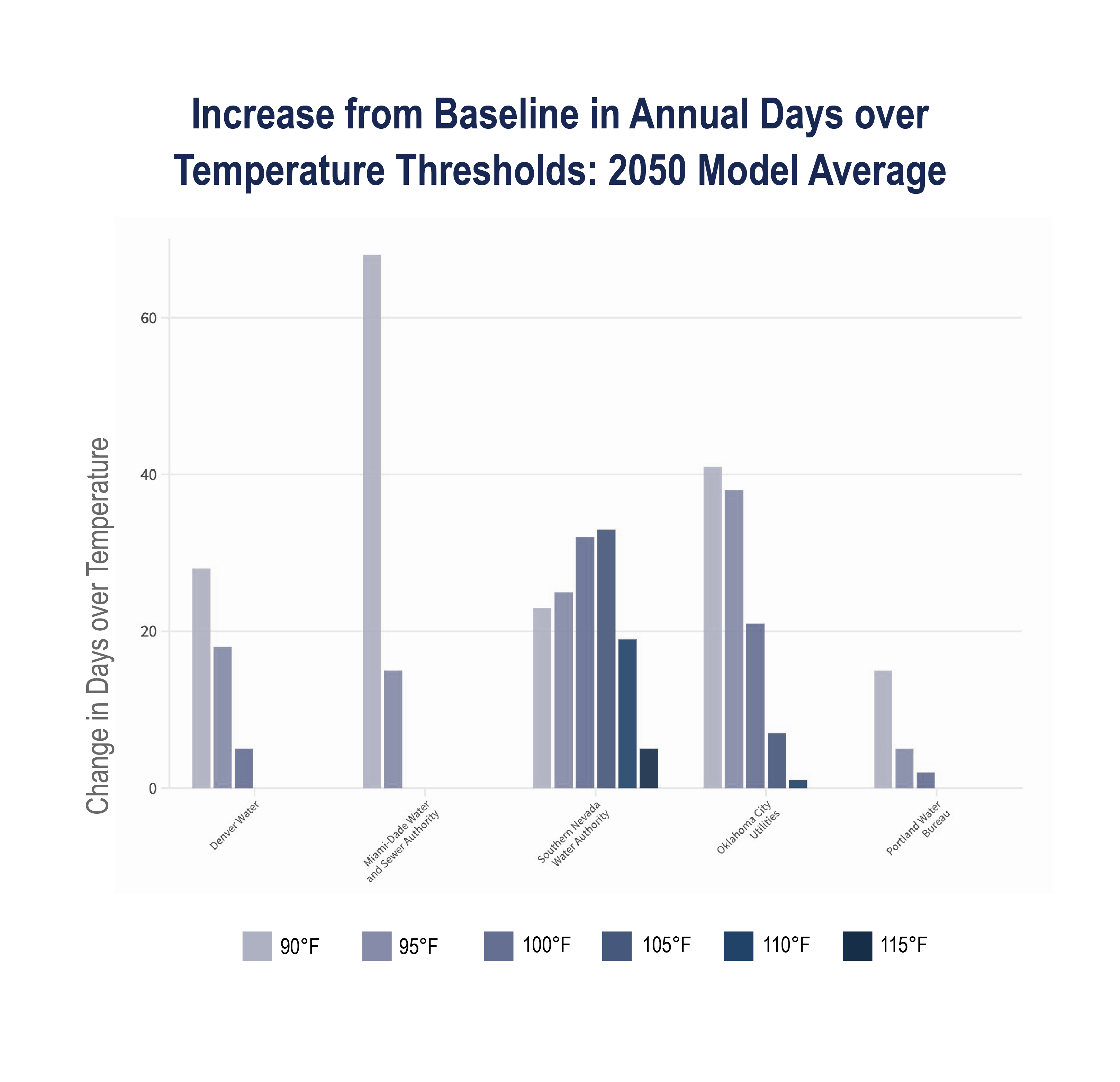 Water utilities are facing climate change impacts on multiple fronts including impacts of temperature on water treatment processes, impacts of severe weather on the plants themselves, and temperature impacts on worker safety and equipment life. The objective of this study was to determine the extent of these issues across multiple geographic areas and multiple climate scenarios.