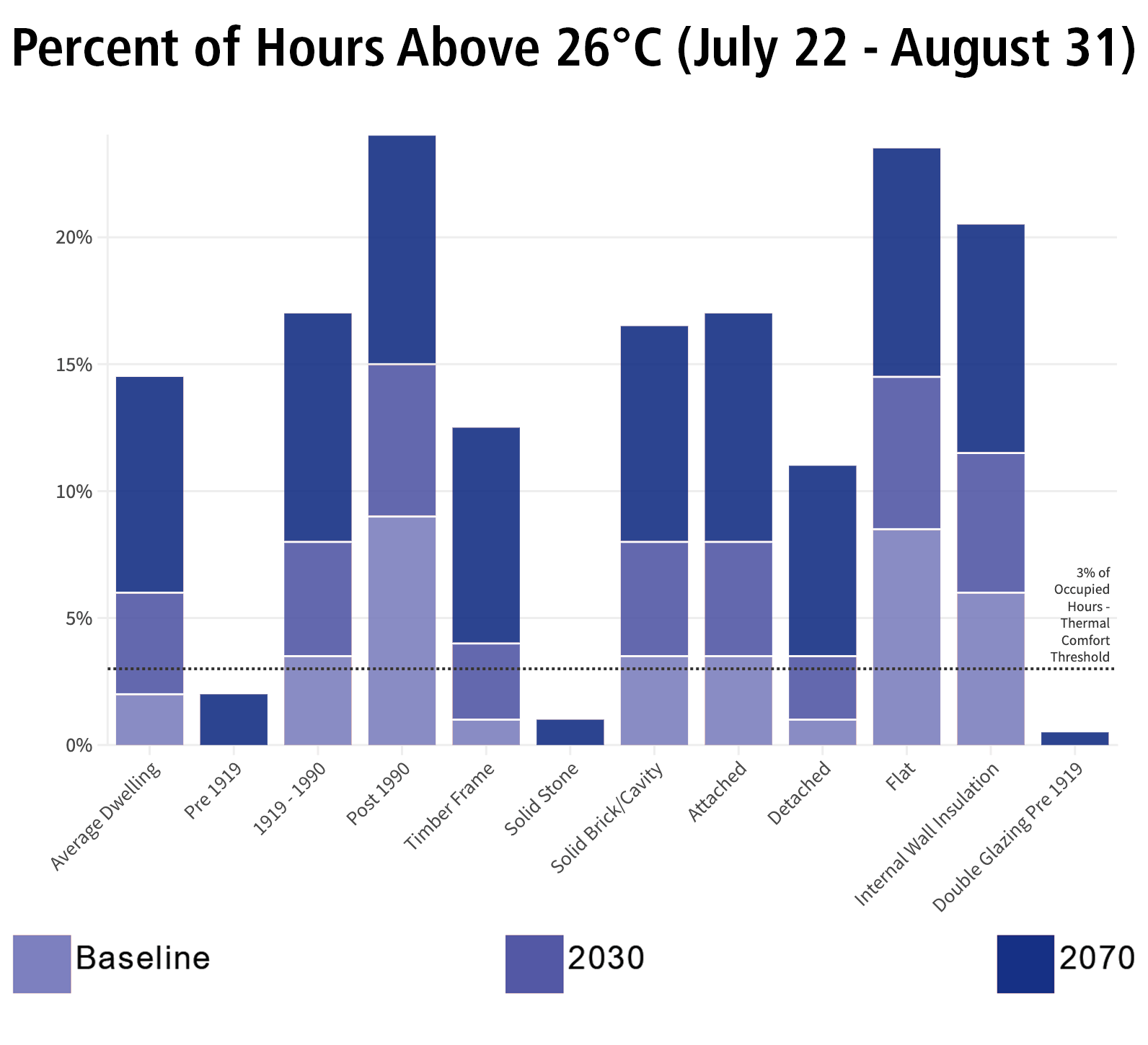 Temperatures are exceeding indoor comfort levels in all properties, but especially in recent construction.