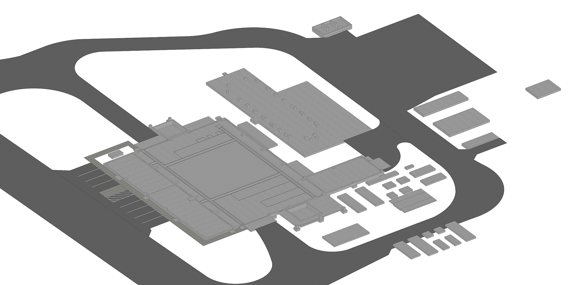 Exterior view of Stanley Consultants' headquarters in Muscatine, Iowa, featuring an abstract sculpture near the entrance.
