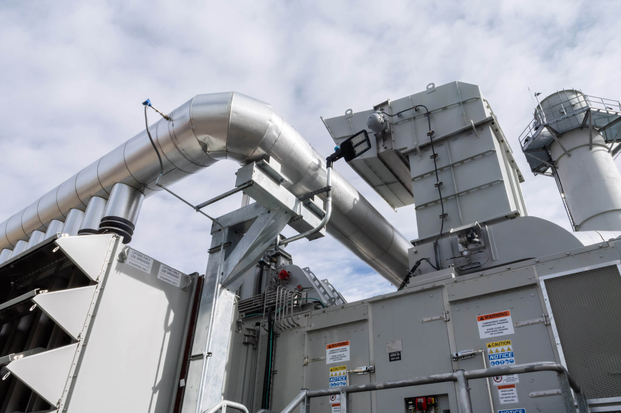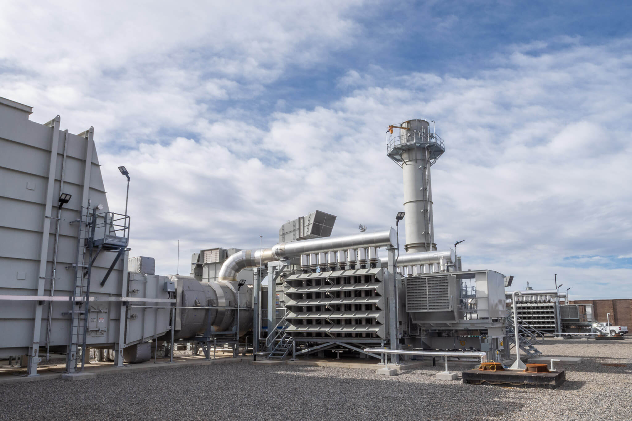 Each combustion turbine generator is equipped with an exhaust stack and a selective catalytic reduction system, which plays a crucial role in reducing nitrogen oxides (NOx) emissions. The generators leverage an inlet heating system to recover and reuse heat from exhaust to allow for operation in extreme cold conditions.