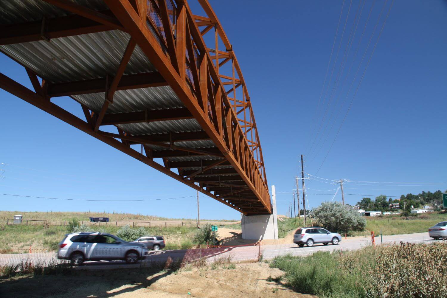 Pedestrian bridge spans busy highway, connects major trail network, improves safety in Denver suburbs